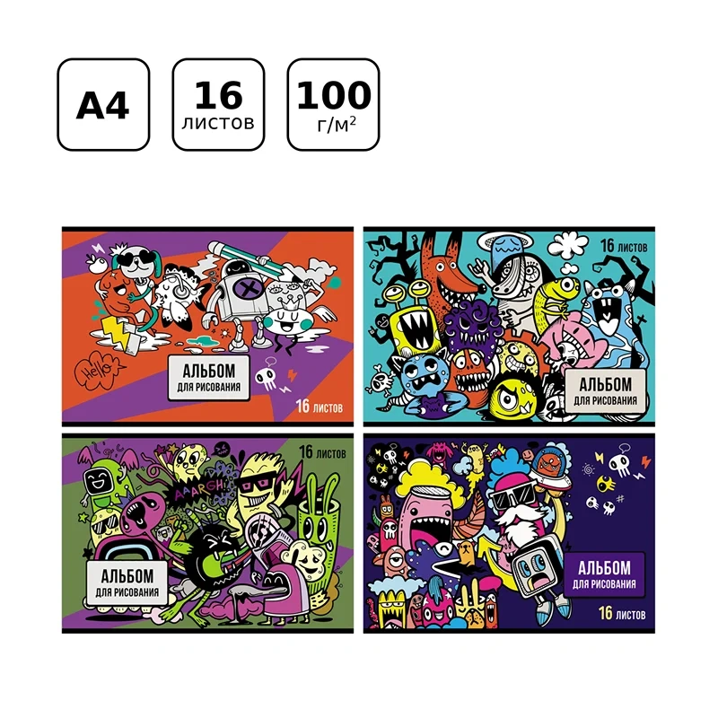 Альбом для рисования BG «Монстр-пати» поставляется в ассорти дизайнов формата А4 и размера 205*295 мм. Товар с обложкой из мелованного картона из 16 листов офсетной бумаги 100% белизны. Тип скрепления изделия – скрепка. Плотность бумаги альбома составляет 100 г/кв.м, что соответствует техническому регламенту «О безопасности продукции, предназначенной для детей и подростков». В данную серию входят дизайны для мальчиков. Альбом отлично подходит для рисования различными типами красок, фломастерами, цветными и чернографитными карандашами, гелевыми ручками. Без возрастных ограничений.