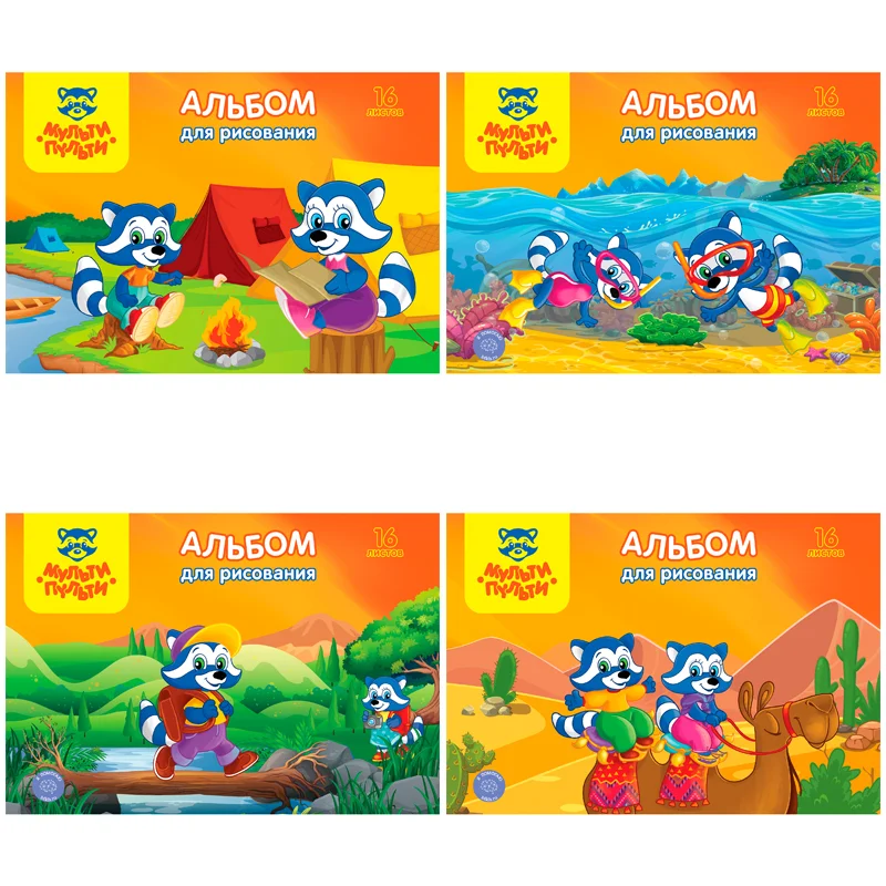 Альбом для рисования 16л., А5, на скрепке Мульти-Пульти 'Приключения Енота', с раскраской