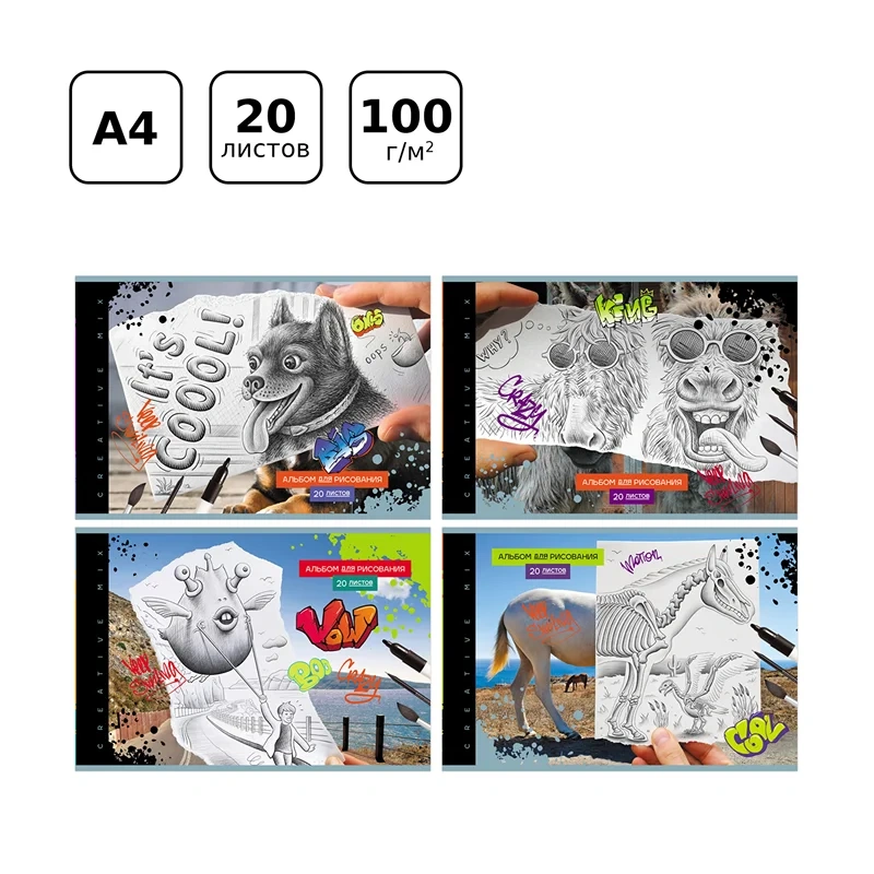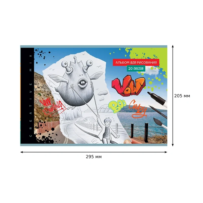 Альбом для рисования BG «Creative mix» поставляется в ассорти дизайнов формата А4 и размера 205*295 мм. Товар с обложкой из мелованного картона из 20 листов офсетной бумаги 100% белизны. Тип скрепления изделия – скрепка. Плотность бумаги альбома составляет 100 г/кв.м, что соответствует техническому регламенту «О безопасности продукции, предназначенной для детей и подростков». В данную серию входят дизайны для мальчиков и девочек. Альбом отлично подходит для рисования различными типами красок, фломастерами, цветными и чернографитными карандашами, гелевыми ручками. Без возрастных ограничений.