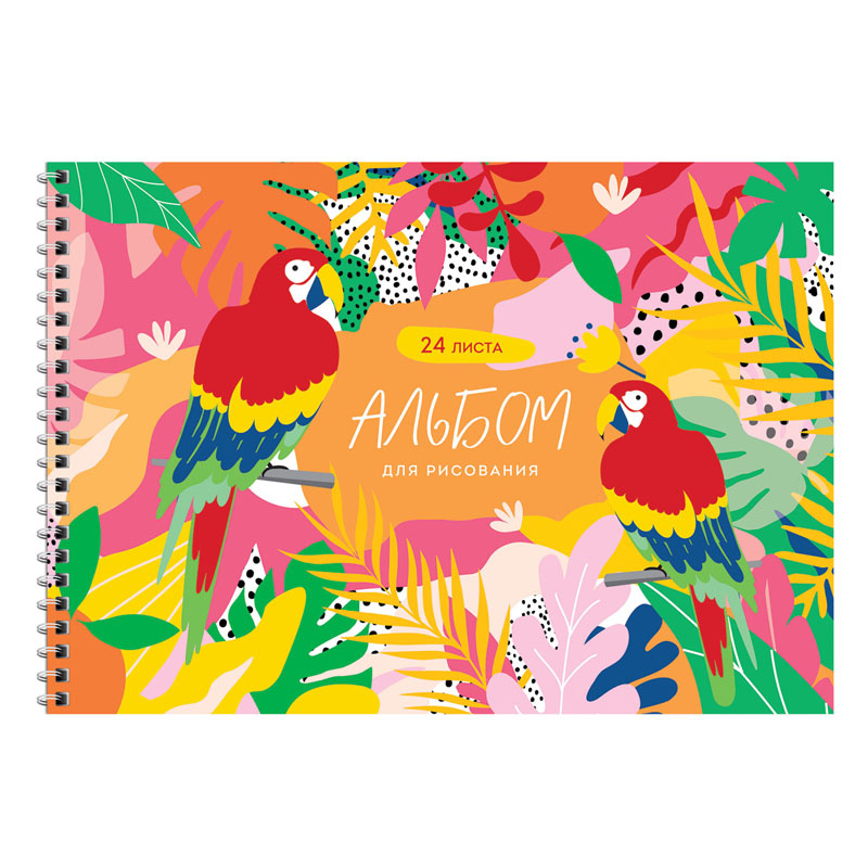 Альбом для рисования 24л., А4, на гребне ArtSpace 'Цветы. Bright tropics', эконом