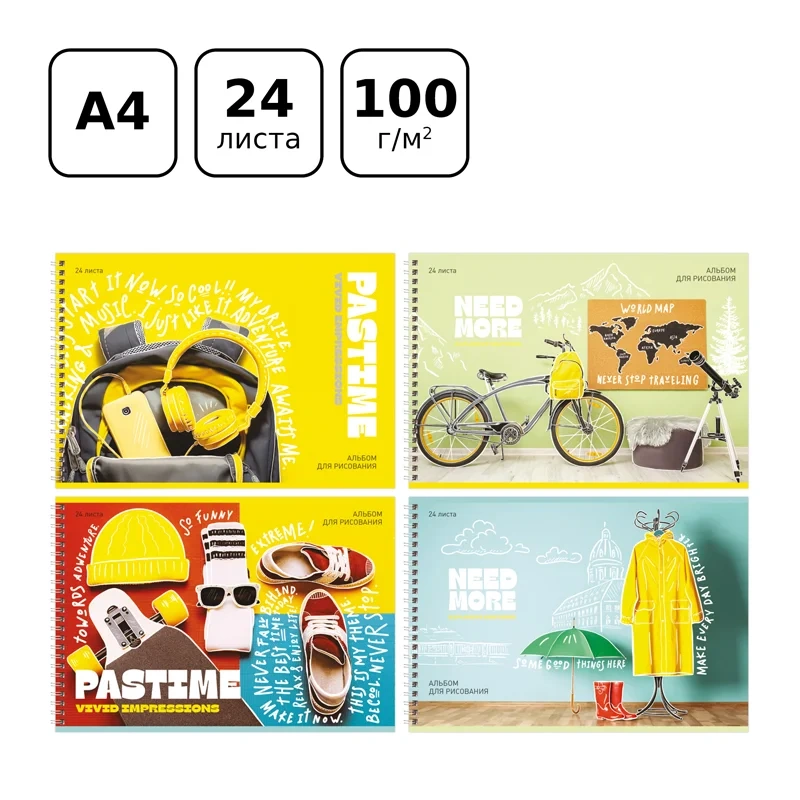 Альбом для рисования BG «Яркая жизнь» – лучший помощник для детского художественного творчества. Альбом на гребне формата А4 размером 205*295 мм с обложкой из мелованного картона состоит из 24 листов офсетной бумаги 100% белизны. Плотность бумаги составляет 100 г/м2, что соответствует техническому регламенту «О безопасности продукции, предназначенной для детей и подростков».