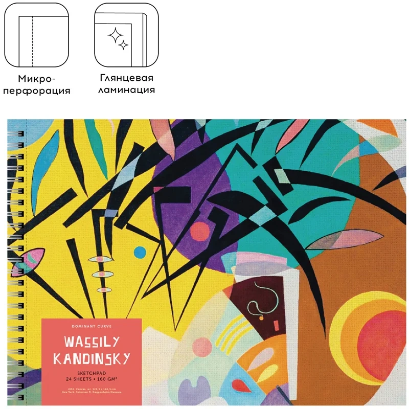 Альбом отлично подойдёт для рисования различными типами красок, фломастерами, цветными и чернографитными карандашами, гелевыми ручками. Стильный дизайн обложки с отделкой глянцевой ламинацией посвящен творчеству художника Василия Кандинского.