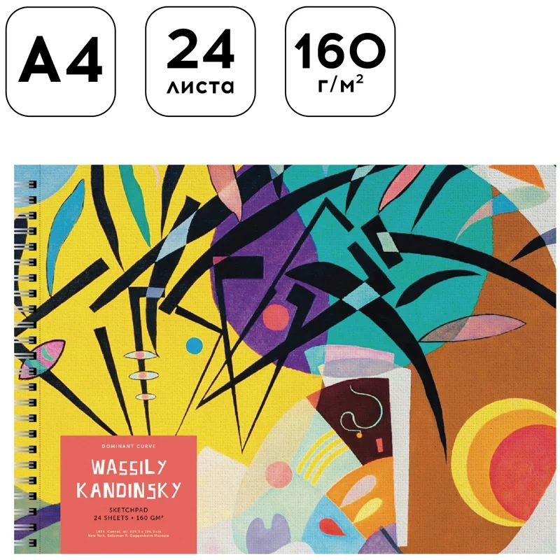 Альбом для рисования Greenwich Line The origin of abstraction формата А4 размером 203*285 мм с обложкой из импортного чистоцеллюлозного картона состоит из 24 листов офсетной бумаги на гребне. Каждый лист имеет перфорацию в корешке, что позволяет легко и аккуратно оторвать лист. Плотность бумаги составляет 160 г/м2.