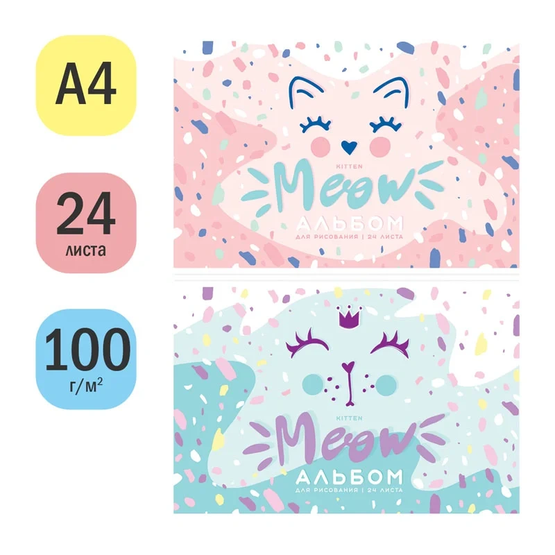 Альбом для рисования 24л., А4, на скрепке ArtSpace 'Рисунки. Meow', эконом