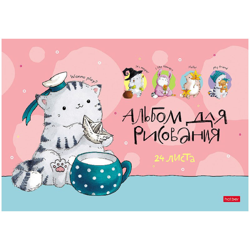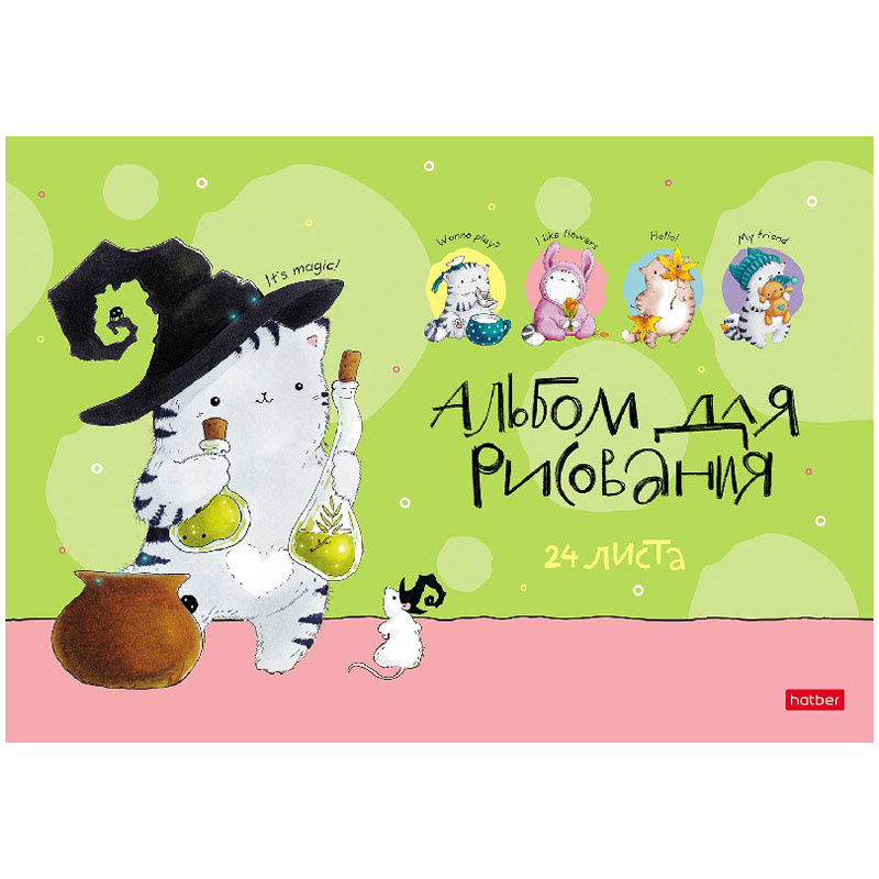 Альбом для рисования 24л., А4, на скрепке Hatber 'Приключения кота Пирожка'