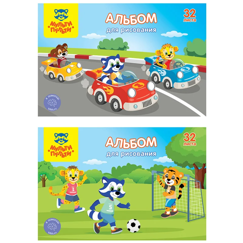 Альбом для рисования Мульти-Пульти формата А4 в картонной обложке. Состоит из 32 листов офсетной бумаги, тип скрепления - склейка. Плотность бумаги — 100 г/кв.м, соответствует Техническому регламенту «О безопасности продукции, предназначенной для детей и подростков». Подходит для рисования различными типами красок, фломастерами, цветными и чернографитными карандашами, гелевыми ручками. Без возрастных ограничений.