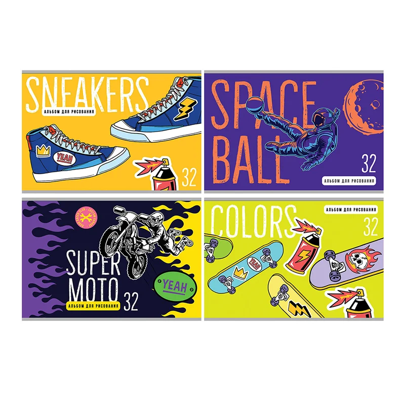 Альбом для рисования BG «Action» поставляется в ассорти дизайнов формата А4 и размера 205*295 мм. Товар с обложкой из мелованного картона из 32 листов офсетной бумаги 90% белизны. Тип скрепления изделия – скрепка. Плотность бумаги альбома составляет 100 г/кв.м, что соответствует техническому регламенту «О безопасности продукции, предназначенной для детей и подростков». В данную серию входят дизайны для мальчиков. Альбом отлично подходит для рисования различными типами красок, фломастерами, цветными и чернографитными карандашами, гелевыми ручками. Без возрастных ограничений.