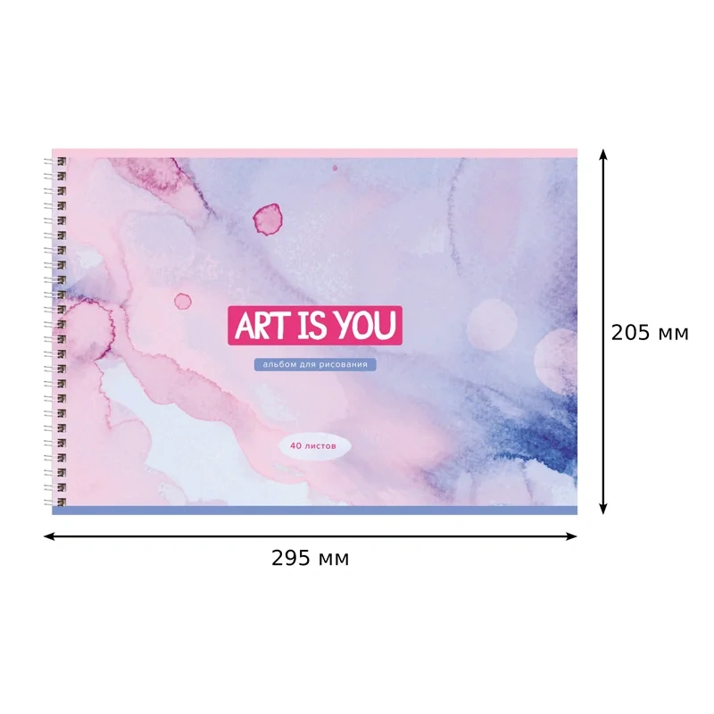 Альбом для рисования BG «Искусство - это ты» – лучший помощник для детского художественного творчества. Альбом на гребне формата А4 размером 205*295 мм с обложкой из мелованного картона состоит из 40 листов офсетной бумаги 100% белизны. Плотность бумаги составляет 100 г/м2, что соответствует техническому регламенту «О безопасности продукции, предназначенной для детей и подростков».