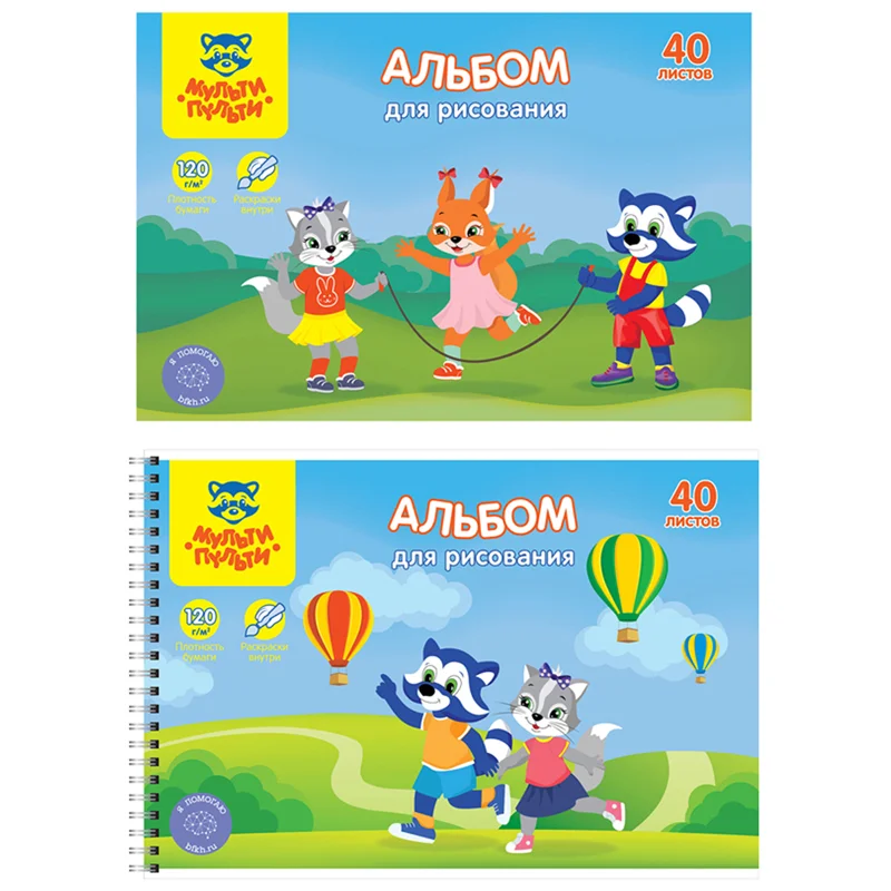 Альбом для рисования формата А4, на гребне. Обложка изготовлена из импортного мелованного картона. На обороте обложки напечатаны картинки для раскрашивания. Внутренний блок из 40 листов офсетной бумаги плотностью 120 г/кв.м, соответствует Техническому регламенту «О безопасности продукции, предназначенной для детей и подростков». Подходит для рисования различными типами красок, фломастерами, цветными и чернографитными карандашами, гелевыми ручками. Без возрастных ограничений.