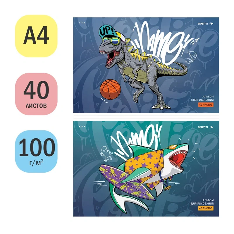 Альбом для рисования 40л., А4, на скрепке ArtSpace 'Рисунки. Graffiti', эконом