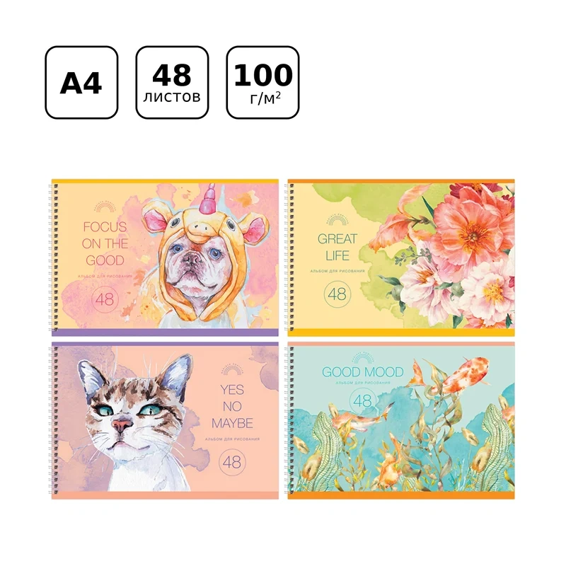 Альбом для рисования 48л., А4 на гребне BG 'Живи на позитиве', эконом