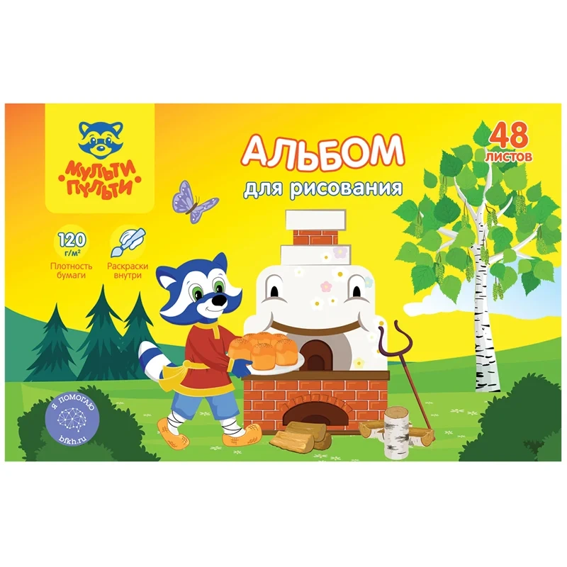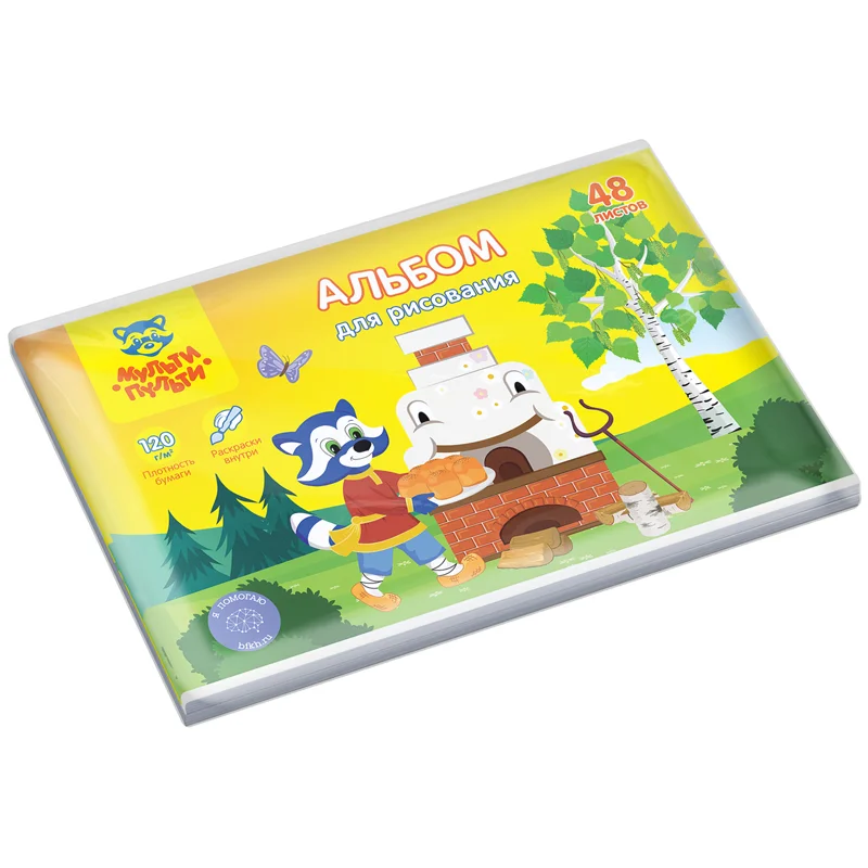 Альбом для рисования 48л., А4, на склейке Мульти-Пульти 'Приключения Енота', с раскраской, 120г/м2,