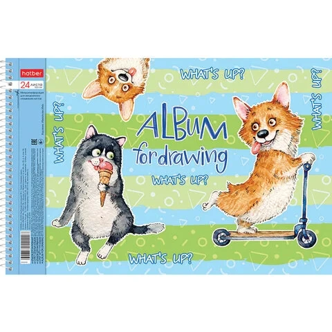 Альбом для рисования А4 24 л., спираль, обложка картон, HATBER, 205х290 мм, 'Корги' (5 видов в спайк