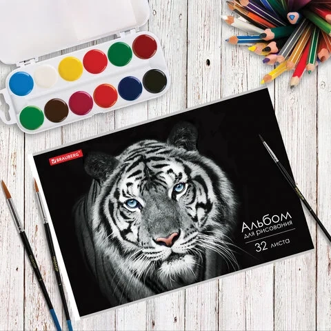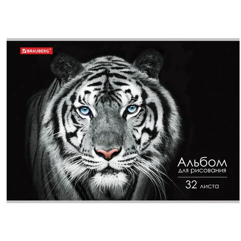 Альбом для рисования А4 32 л., скоба, обложка картон, BRAUBERG ЭКО, 202х285 мм, 'Тигр' (1 вид), 1056