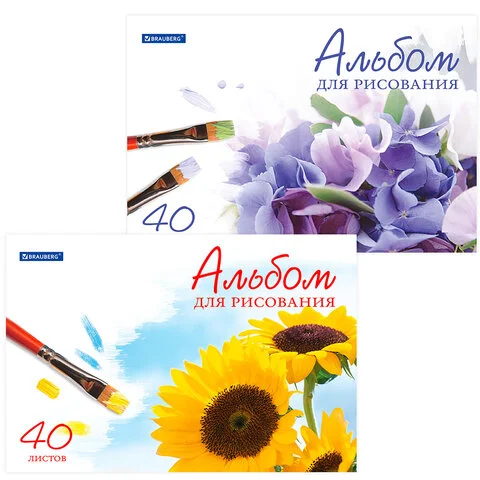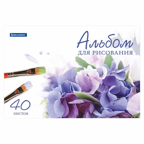 Альбом для рисования Brauberg Цветы, А4, 100 г/м2, 40 листов, на скрепке