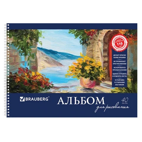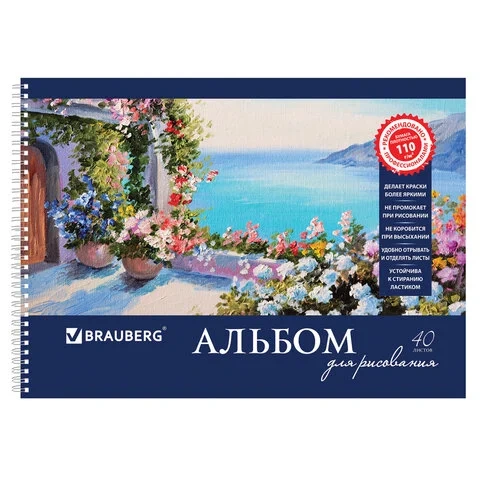 Альбом для рисования Brauberg Пейзаж с цветами, А4, 110 г/м2, 40 листов, на спирали