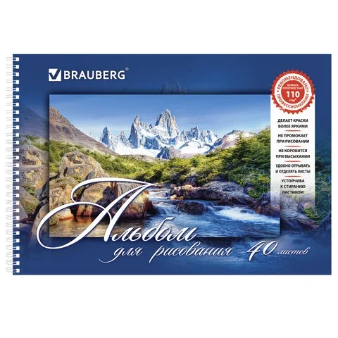Альбом для рисования Brauberg Удивительная природа, А4, 110 г/м2, 40 листов, на спирали