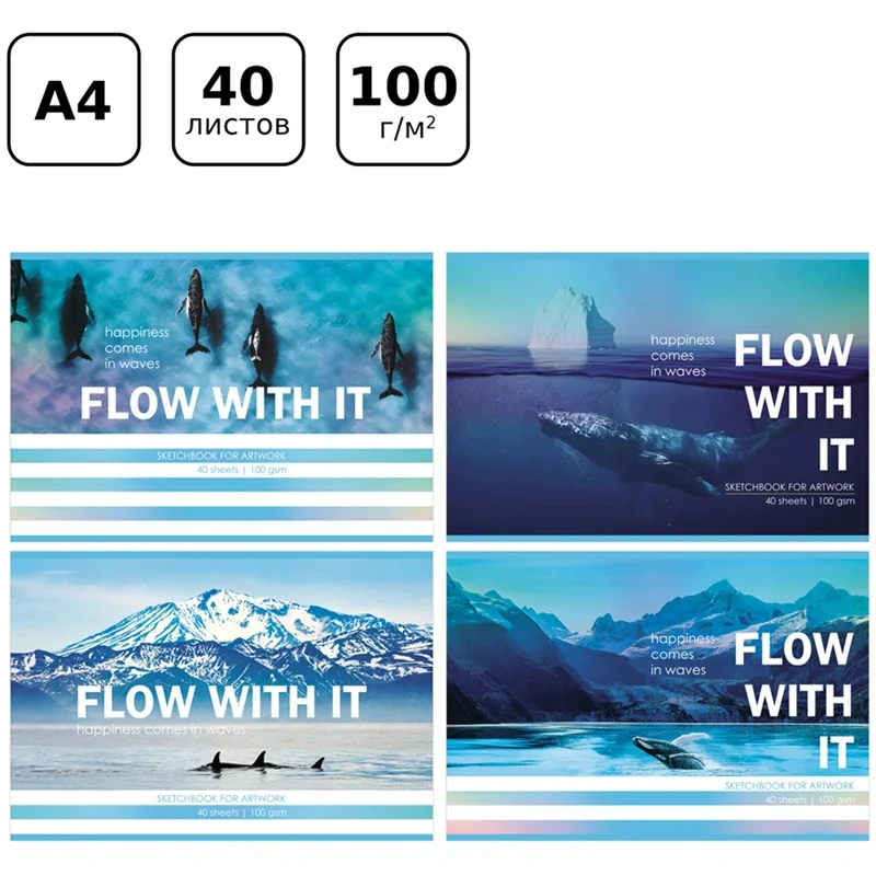 Альбом для рисования 40л., А4, на скрепке BG 'Счастье приходит волнами'