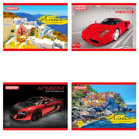 Альбом для рисования МАЛЫЙ ФОРМАТ А5, 40 листов, скоба, обложка офсет, ПИФАГОР, 200х148 мм, 'Автомоб