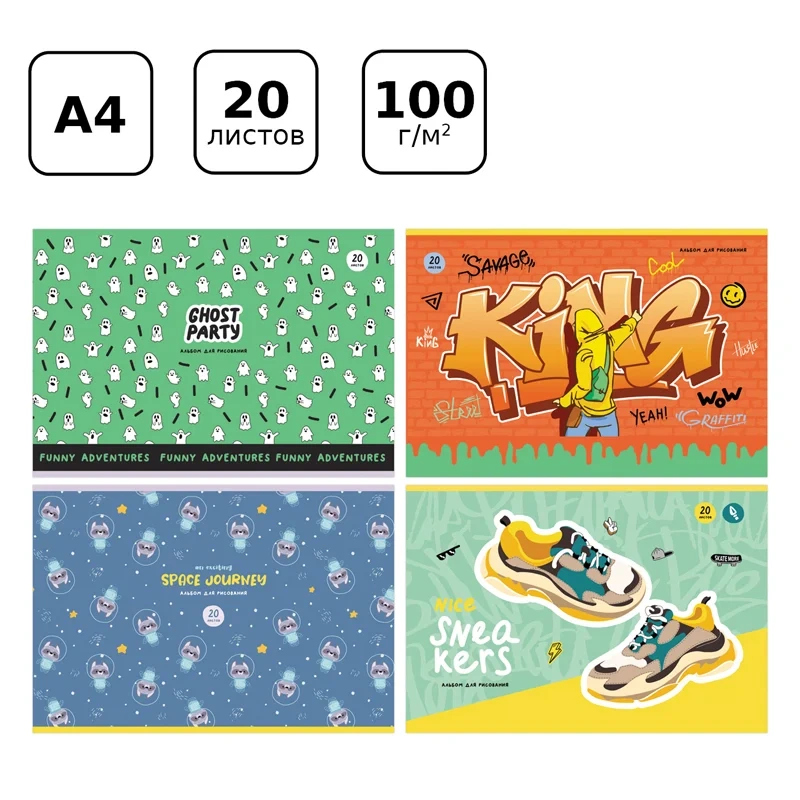 Альбом для рисования BG «MIX. Универсальный» поставляется с ассорти дизайнов формата А4 и размера 20...