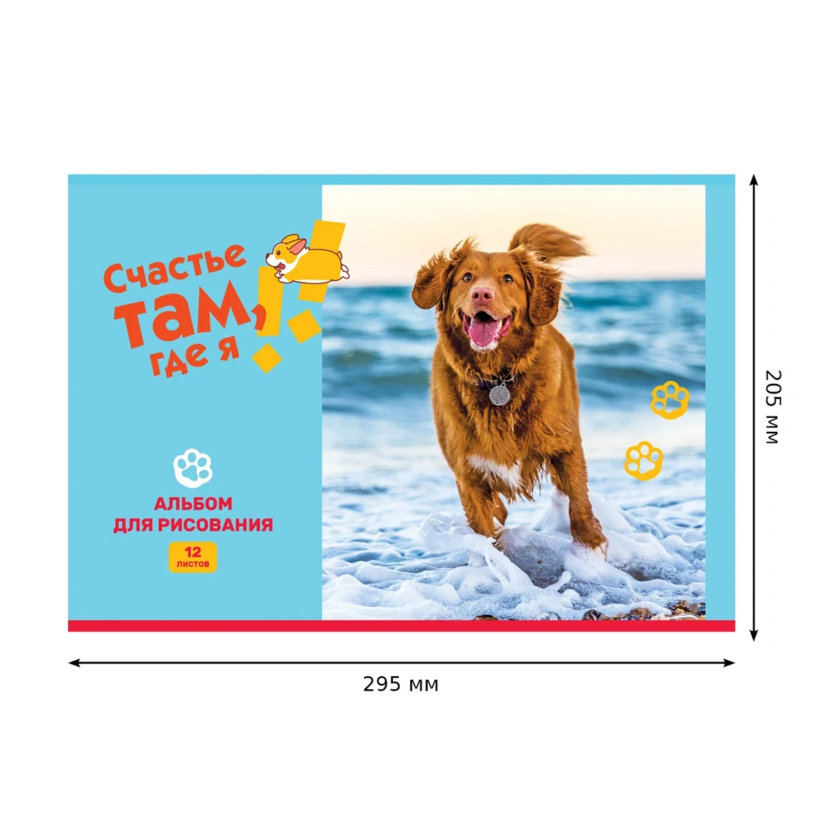 Альбом для рисования 12л., А4, на скрепке BG 'Счастье там, где я', эконом