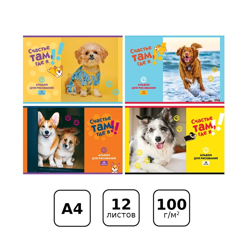 Альбом для рисования BG «Счастье там, где я» поставляется в ассорти дизайнов формата А4 и размера 20...