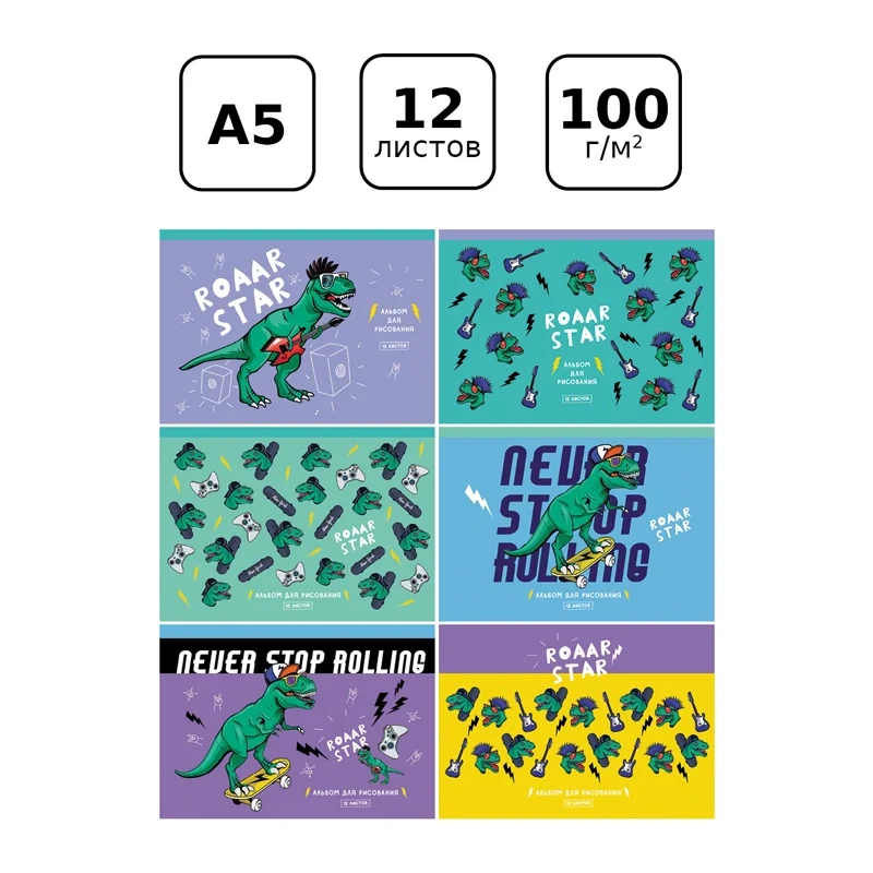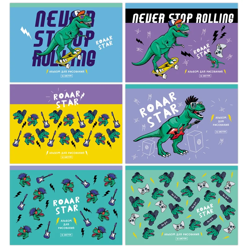 Альбом для рисования BG 'Roaar star' поставляется с ассорти дизайнов формата А5 и размера 150*205 мм...