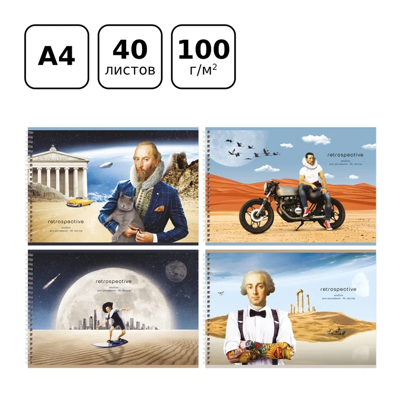 Альбом для рисования 40л., А4, на гребне BG 'Retrospective'