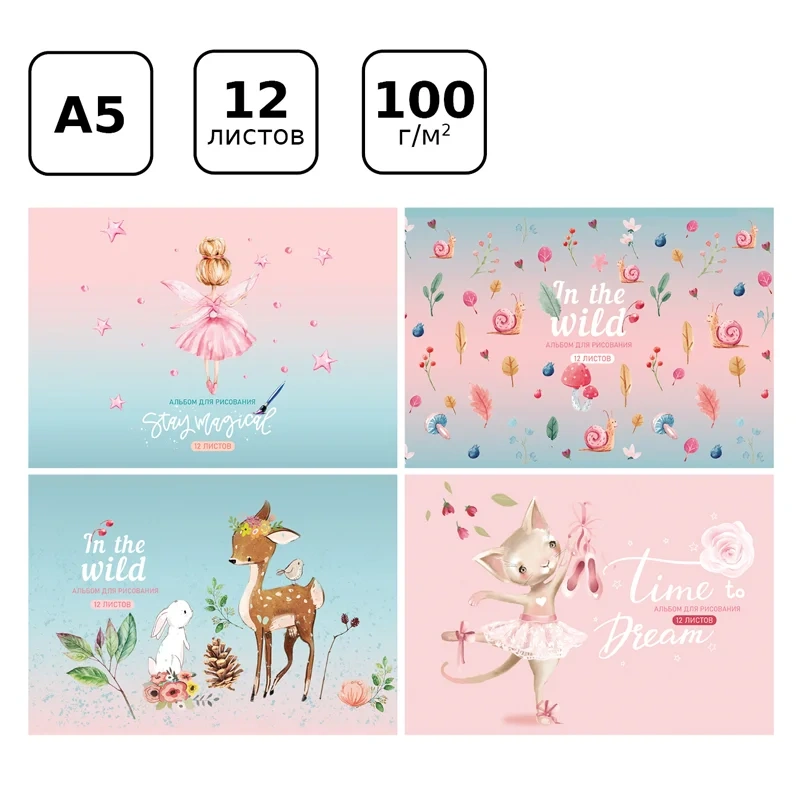 Альбом для рисования 12л., А5, на скрепке BG 'Время мечтать'