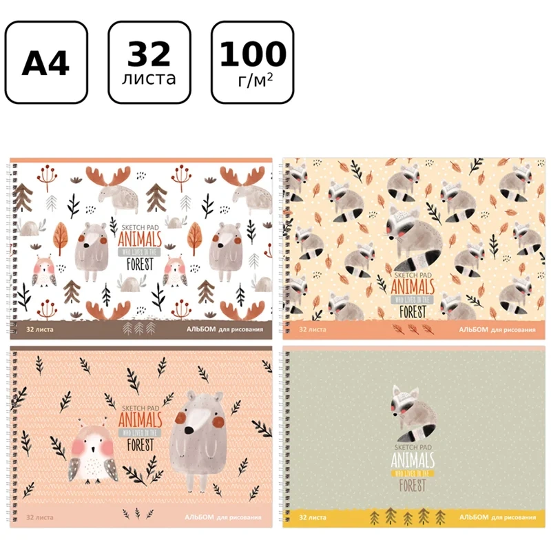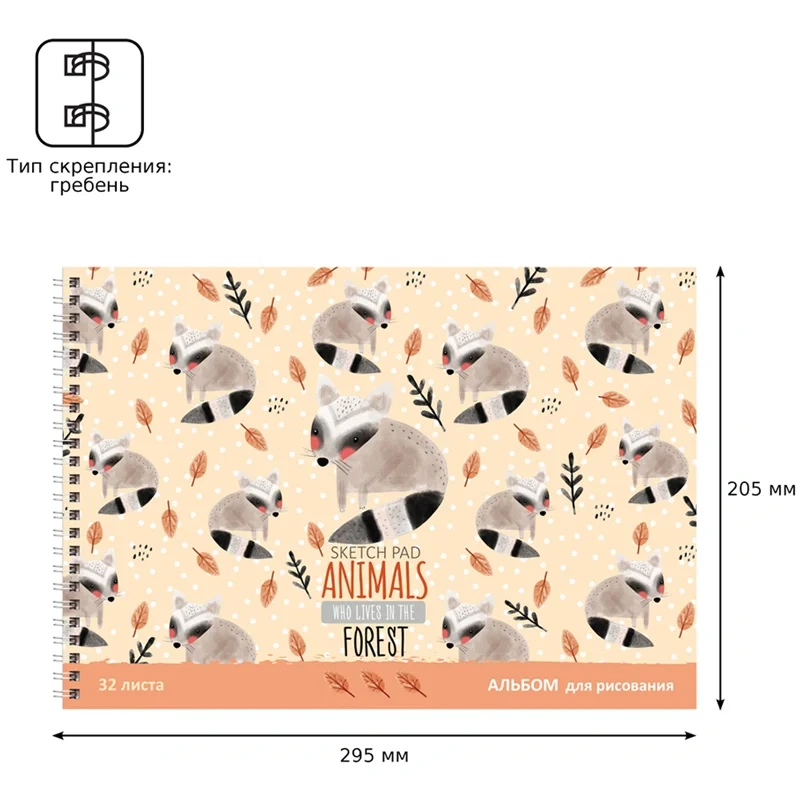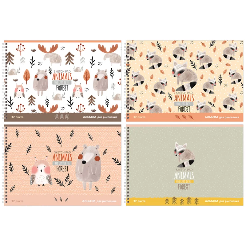 Альбом для рисования 32л., А4, на гребне BG 'Animals forest'
