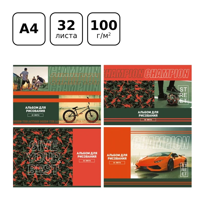 Альбом для рисования 32л., А4, на скрепке BG 'Street champion'