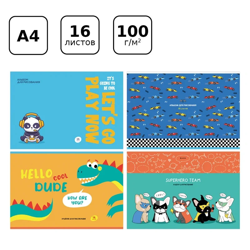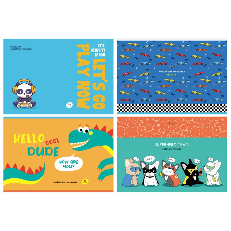 Альбом для рисования 16л., А4, на скрепке BG 'Mix. Мальчики'