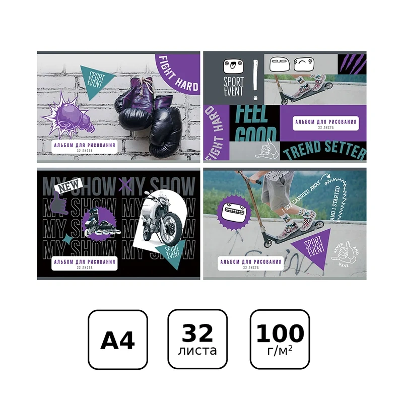 Альбом для рисования 32л., А4, на скрепке BG 'Sport event'