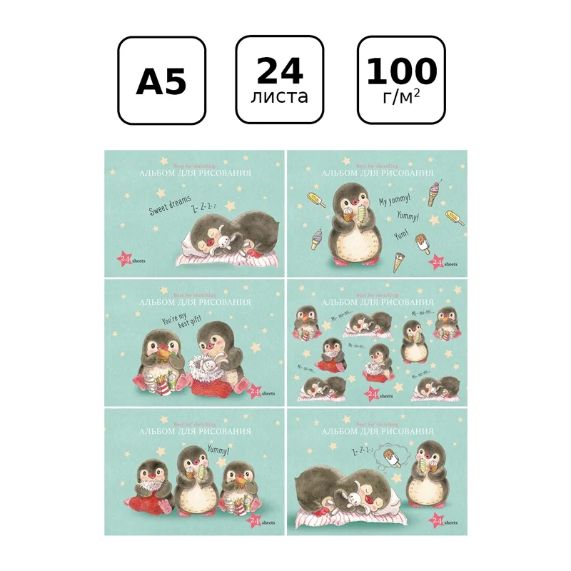 Альбом для рисования 24л., А5, на скрепке BG 'Маленький пингвинчик'
