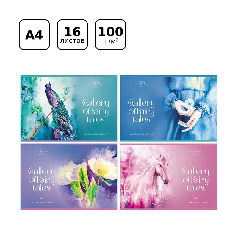 Альбом для рисования 16л., А4, на скрепке BG 'Сказочная галерея'