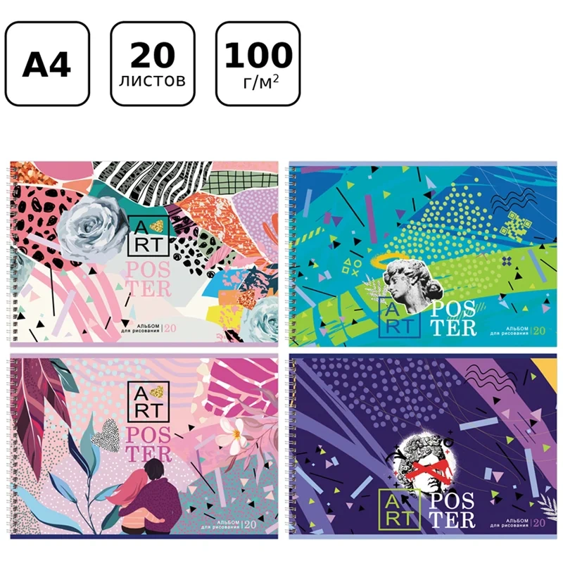 Альбом для рисования 20л., А4, на гребне BG 'ARTposter'