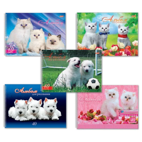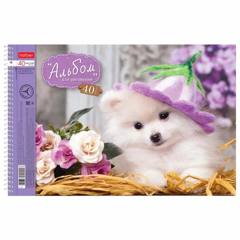 Альбом для рисования Hatber Любимцы, А4, 100 г/м2, 40 листов, на спирали
