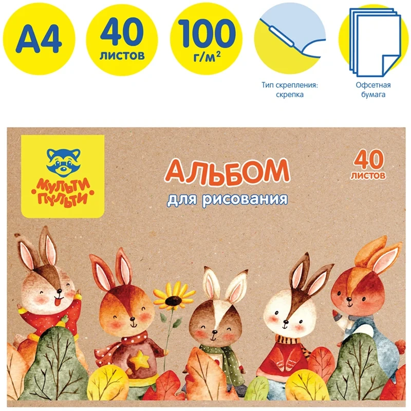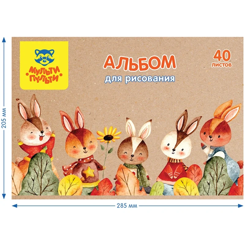 Альбом для рисования 40л., А4, на скрепке Мульти-Пульти 'Зайчики', крафт картон