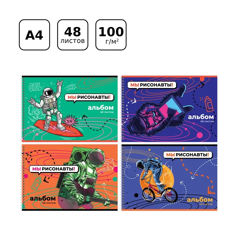 Альбом для рисования 48л., А4, на гребне BG 'Мы рисонавты!'