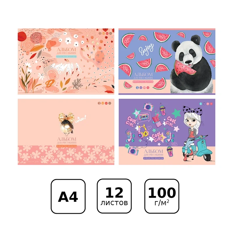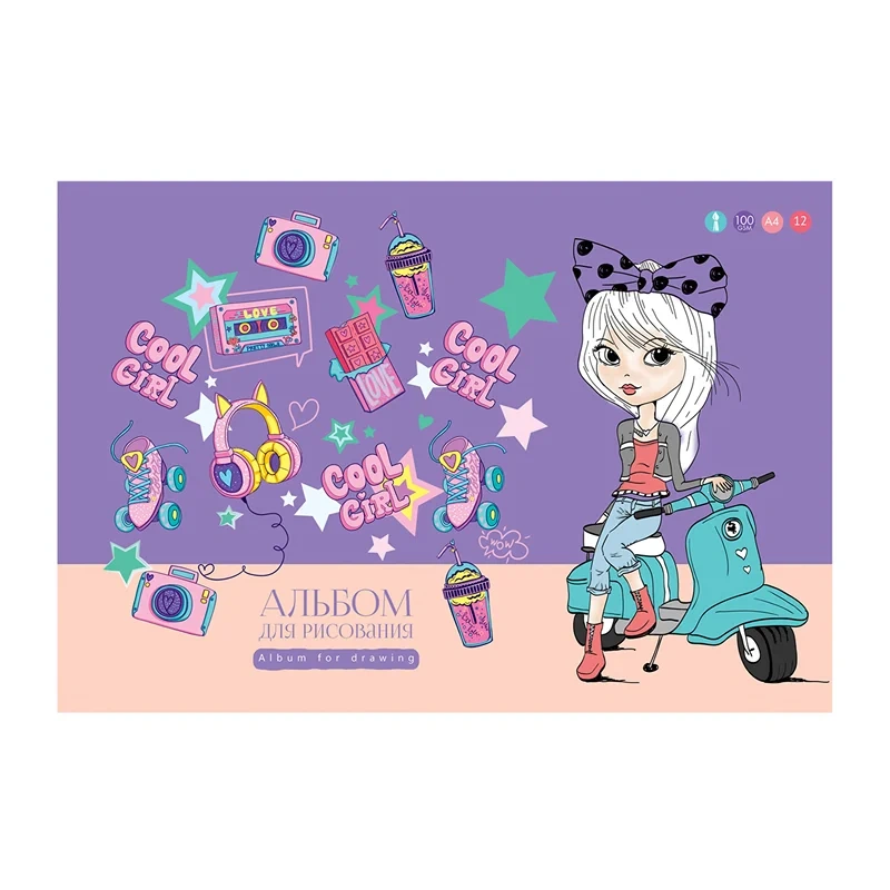 Альбом для рисования 16л., А4, на скрепке BG 'Mix. Девочки'