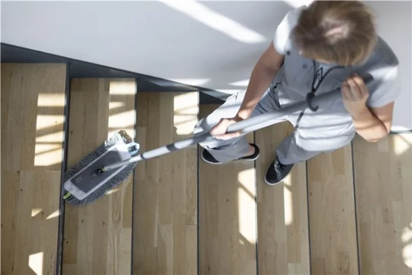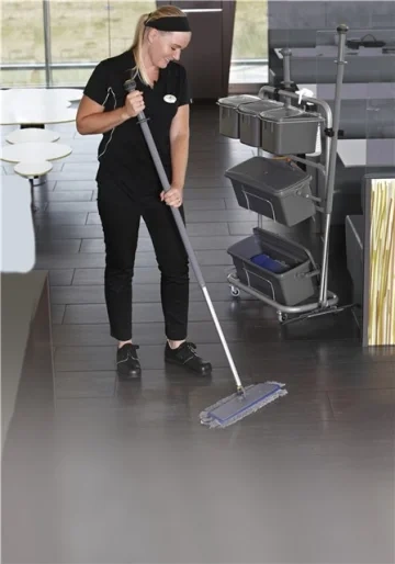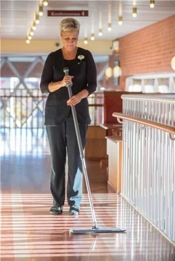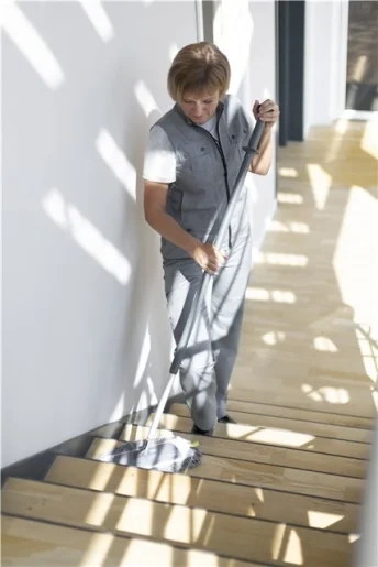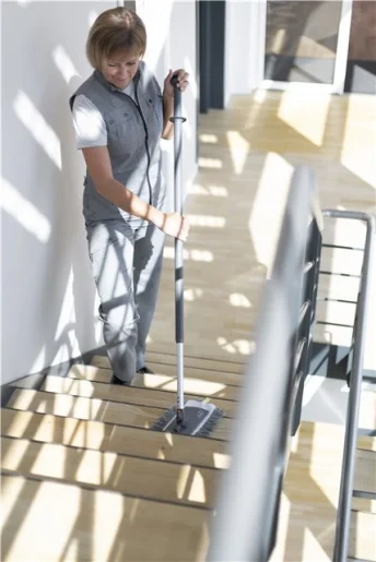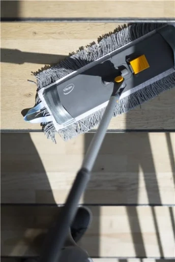 Телескопическая ручка Vikan может использоваться со всеми держателями мопов Vikan. Изменение длины производится при нажатии кнопки наверху рукоятки. Фиксация происходит при отпускании кнопки.