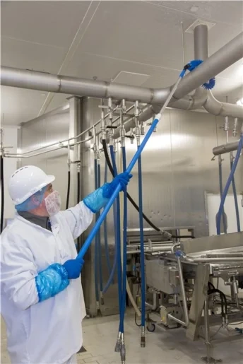 Телескопическая ручка позволяет производить уборку на высоте до 4,3 м. Часто используется с держателем для падов арт. 5500 и щеткой арт. 7067 для мытья высоких стен и резервуаров. Можно использовать с ершами арт. 5371 и 5374 для мытья высоко расположенных труб.