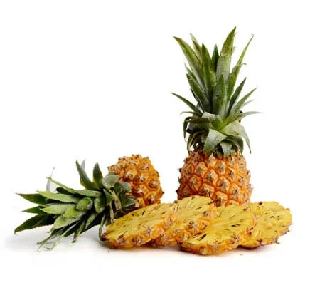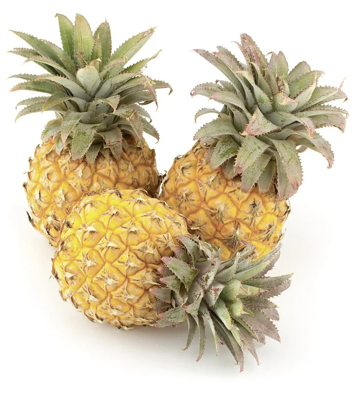 Ананас мини — сладкий тропический фрукт, который произрастает в Южной Африке. Плод цилиндрической формы покрыт чешуйками. Он имеет насыщенный богатый аромат, мякоть красивого золотистого оттенка и приятный сладкий вкус. Сердцевина фрукта мягкая и съедобная, в отличие от других сортов. Миниатюрный ананас в длину чаще всего достигает не более 13 см. Его диаметр — до 9 см. Фрукт является настоящей сокровищницей витаминов, минералов и других питательных веществ. Он богат полезной для процесса пищеварения клетчаткой, а также содержит фермент бромелайн, который помогает организму усваивать белки. Ананас мини можно употреблять в чистом виде — нарезанным на кусочки или кольца. Также он подойдет для приготовления различных блюд — как сладких, так и несладких.
