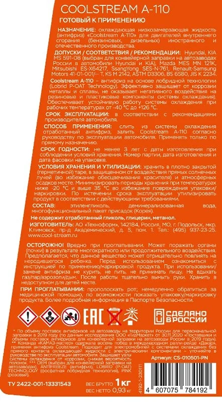 Лобридный антифриз, используемый для заправки (под иными торговыми названиями) в новые автомобили на заводах Hyundai и KIA по всему миру. Специально разработан под технические требования Hyundai-Kia, обладает официальным допуском Hyundai MS 591-08. Официальные допуски: Hyundai, KIA. Используется для первоначальной заправки на автозаводах: Hyundai Motor Manufacturing RUS.