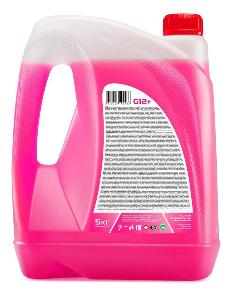 Карбоксилатный Антифриз Sibiria -40 G12+ изготовлен по новейшей технологии органических кислот (Organic Acid Technology) из этиленгликоля высшего сорта и импортного пакета функциональных присадок. Не содержит нитритов, нитратов, аминов, фосфатов, боратов и силикатов. Предназначен для всех современных двигателей, подвергающихся высокой нагрузке, особенно алюминиевых. Антифриз обеспечивает прекрасную защиту системы охлаждения от замерзания, коррозии и перегрева, эффективно защищает от образования отложений.