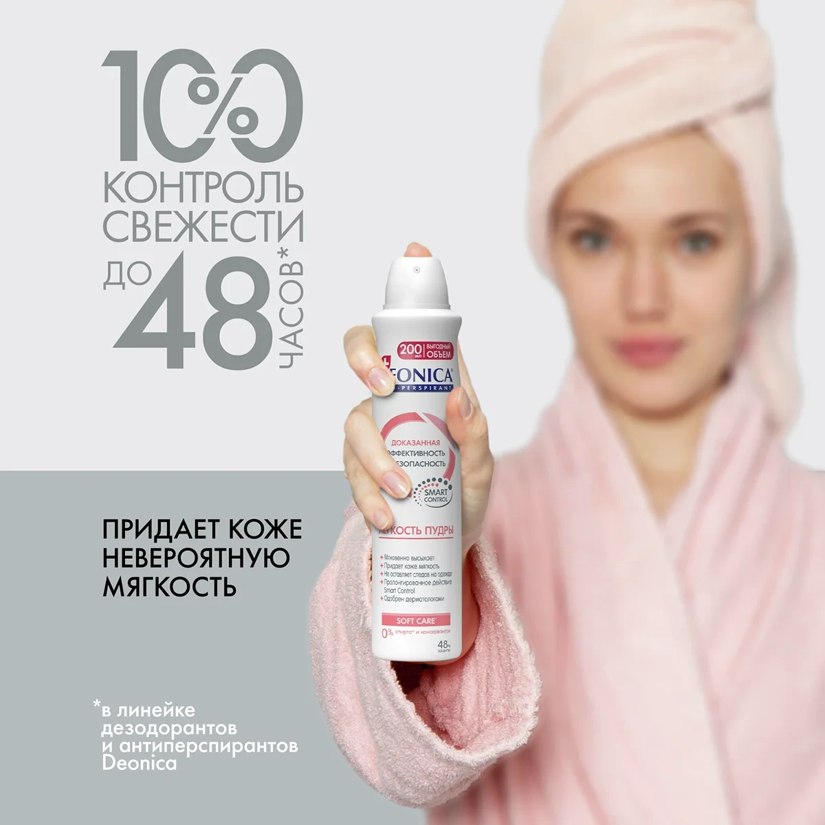 Почувствуйте непревзойденную легкость и свежесть с дезодорантом-антиперспирантом Deonica Легкость пудры. Он мгновенно высыхает, придавая коже невероятную мягкость и нежность, обеспечивая надежную защиту от пота и неприятного запаха до 48 часов.