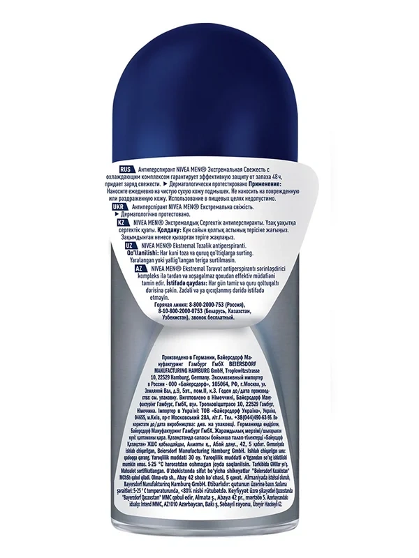 Дезодорант-антиперспирант ролик Nivea Экстремальная свежесть обеспечит вас надежной защитой от неприятного запаха на срок до 48 часов. А формула с ментолом - ощущением свежести и прохлады на весь день. Стойкий мужской аромат и вихрь ментоловой свежести в одном флаконе. Специальная формула с защитой от раздражения удовлетворит высокие требования пользователя с самой чувствительной кожей. Не содержит спирта - подходит даже для чувствительной кожи. Сильная защита и забота о коже от Nivea на каждый день! Продукт дерматологически протестирован. Только ощущение сухой и чистой кожи в течение всего дня. Шариковый антиперспирант даёт в 2 раза больше применений, чем спрей!