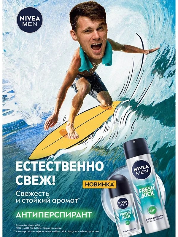 Встречай новинку - антиперспирант Nivea Fresh Kick с мощным зарядом свежести и надежной защитой от пота и запаха на протяжении 48 часов. Главным компонентом свежести нового антиперспиранта является кактусовая вода, которая вместе с другими ингредиентами дает ощущение свежести как после душа в жаркий день и обеспечивает деликатный уход без раздражения кожи. Стойкий аромат свежести будет с тобой весь день. Ощути новую свежесть от Nivea - получи заряд уверенности. А еще шариковый дезодорант-антиперспирант даёт в 2 раза больше применений, чем спрей!