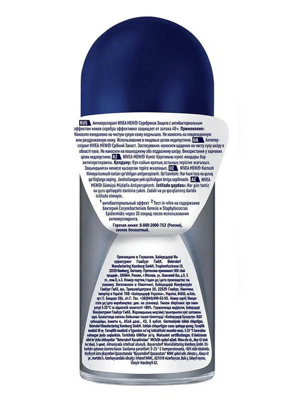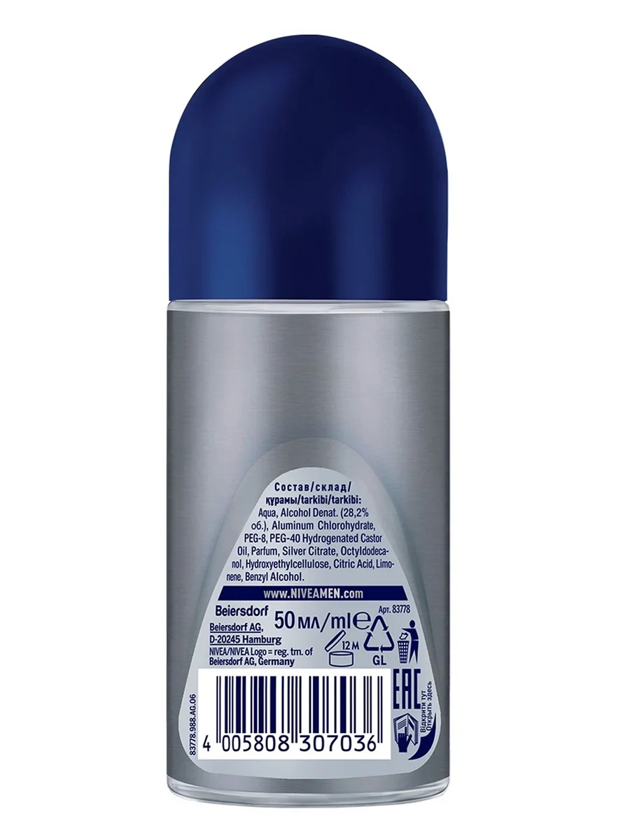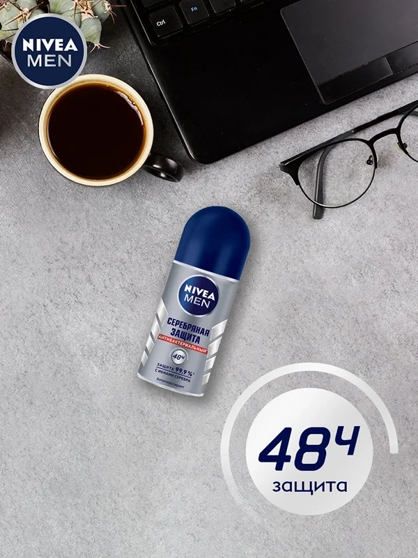 Дезодорант-антиперспирант ролик Nivea Men Серебряная защита с уникальной антибактериальной формулой с ионами серебра для защиты от пота и запаха на 99,9%. Ни один другой драгоценный металл не обладает столь сильными антибактериальными и противовоспалительными свойствами, как серебро. Кроме антибактериального эффекта, продукт успокаивает кожу и имеет свежий мужской аромат. Не содержит спирта и подходит даже для очень чувствительной кожи. Обеспечит вас надежной защитой от пота и неприятного запаха на срок до 48 часов. Шариковый антиперспирант даёт в 2 раза больше применений, чем спрей!