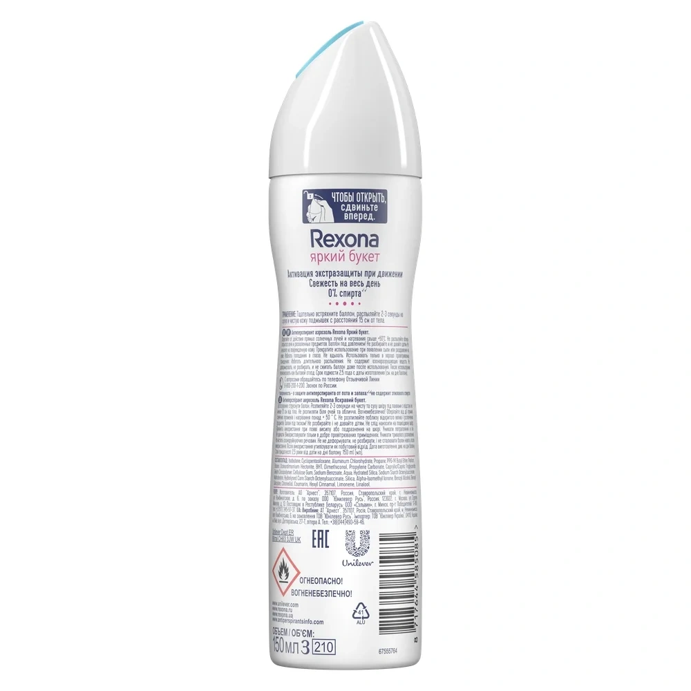 Лето дарит нам незабываемое чувство свободы. Длительные прогулки, езда на велосипеде на работу. Летом хочется как можно больше времени проводить на улице, наслаждаясь каждым мгновением. Дезодорант - антиперспирант аэрозоль Рексона Яркий букет с теплым летним ароматом позволит тебе наслаждаться летом круглый год. Этот женский дезодорант - антиперспирант, созданный с использованием технологии Motionsense, подстраивается под ритм твоей жизни, обеспечивая защиту от пота и запаха на 48 часов. Микрокапсулы, нанесенные на поверхность кожи, раскрываются во время движения под действием трения, давая тебе возможность постоянно ощущать свежесть. Прогулочный шаг, неспешная пробежка, спринтерский бег ? Тебе все по плечу, ведь мы позаботились о твоей защите. Чем бы ты ни занималась, ты будешь чувствовать только свежесть и комфорт. Насладись ярким букетом ароматов сочной клубники и абрикоса с утонченными нотками нежной магнолии, жасмина и ландыша в гармонии с теплыми аккордами ванили, мускуса и кедра. Ты создана для движения. Теперь у тебя есть антиперспирант, который сможет подстроиться под ритм твоей жизни.Покоряете ли вы новую вершину, спешите ли на автобус, выступаете ли с докладом или идете на свидание, будьте уверены, вы надежно защищены от пота и запаха - что бы вы ни запланировали, у Рексона есть решение! Наши продукты работают так же эффективно, как и вы. Мы стремимся узнать о поте как можно больше, чтобы затем использовать полученные знания для создания инновационных формул наших продуктов. Рексона никогда не подведет!